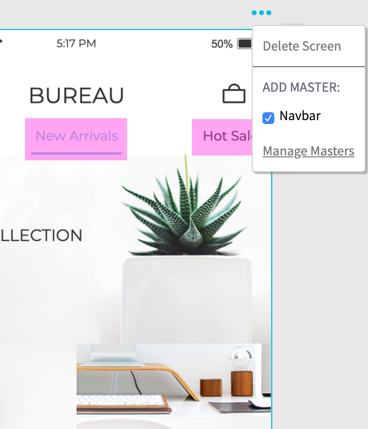 To add a master to a screen, click the ellipsis menu at the top-right of the screen and check the box next to the master's name. Uncheck the box to remove the master from the screen.