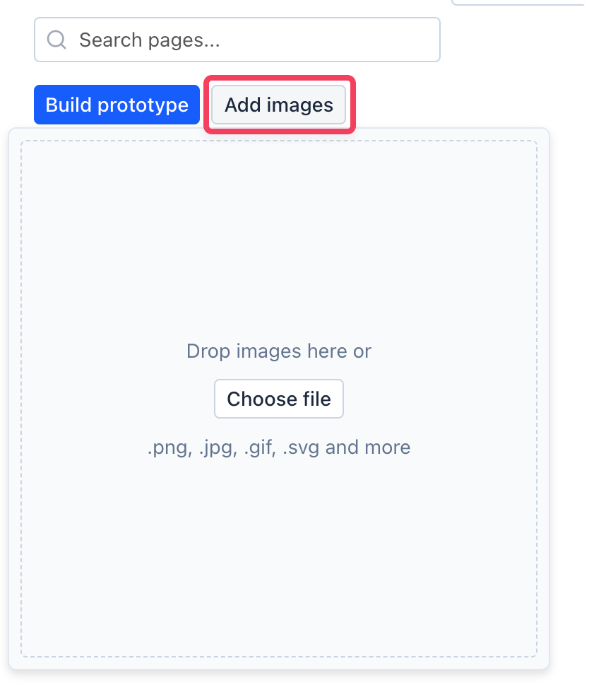 Click the Add images button on the project's Overview screen to add PNG, JPG, GIF, and SVG files to the project.