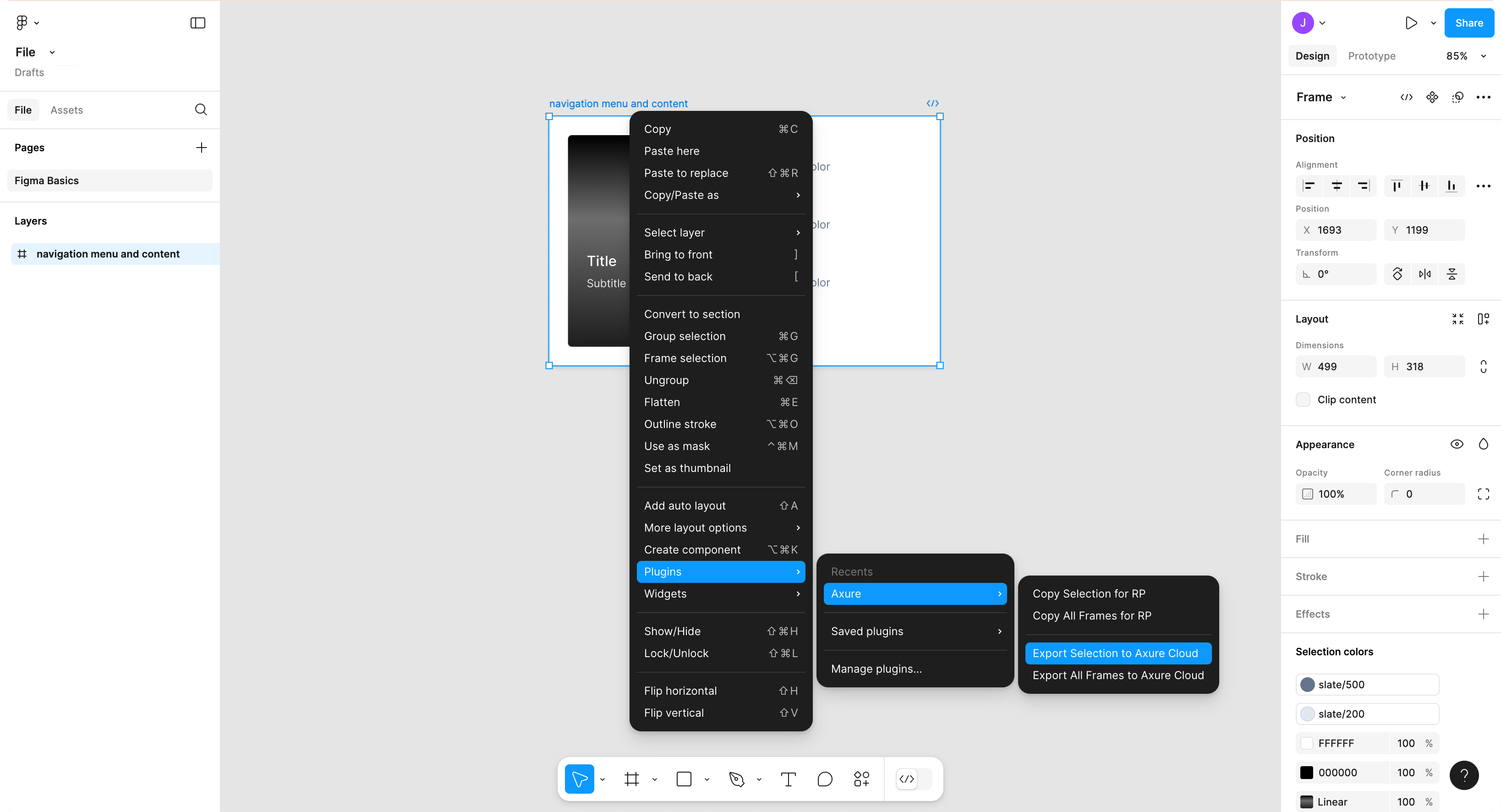 Go to Plugins → Axure → Export Selection to Axure Cloud. This will open the Axure Cloud app.
