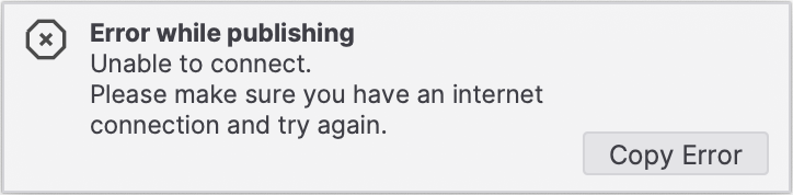 There are a number of actions in Axure RP that require a connection to the Axure Cloud servers: signing in to your Axure account, publishing a prototype to Axure Cloud, and any actions related to team projects. If Axure RP is unable to communicate with the Axure Cloud servers while attempting one of these, you'll see this error message: