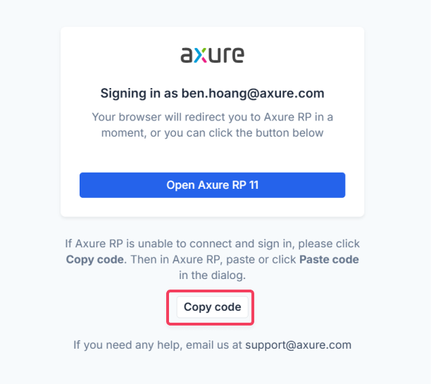 - Axure RP will open your web browser to sign in. Once the authentication process is complete, you can navigate back to the Axure RP application and select Continue to RP to begin prototyping.