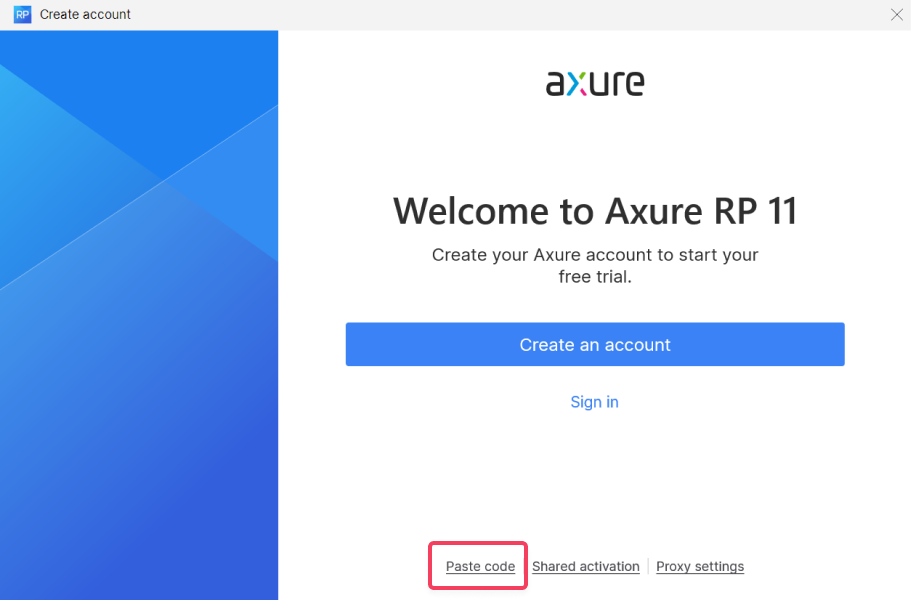 If you don’t have an Axure account yet, select Create an account and sign up using the email address that your subscription is assigned to.