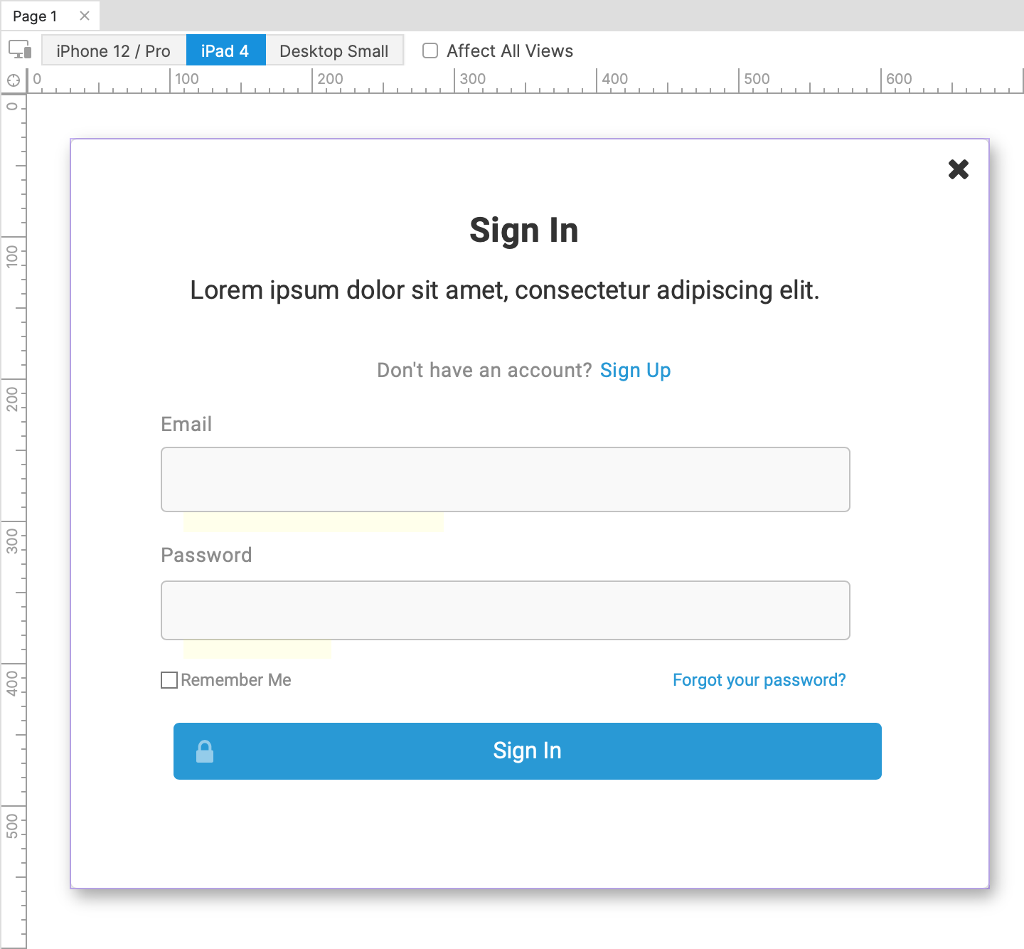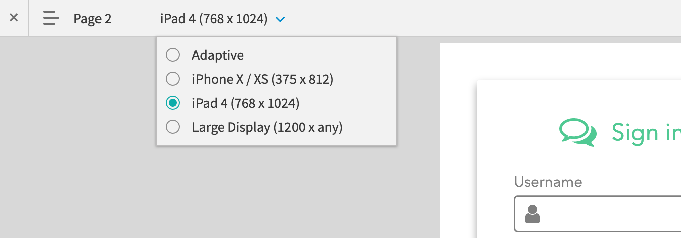 If you'd like to see a different view, use the Adaptive Views dropdown in the prototype player. Select one of the project's views, or select Adaptive to switch back to the view that best fits your web browser's width.