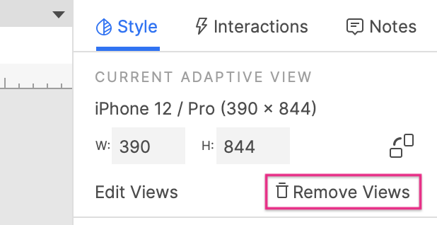 To remove adaptive views from a page, click Remove Views at the top-right of the Style pane.