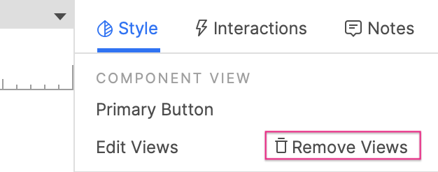 To remove component views from a component, click Remove views at the top-right of the Style pane.