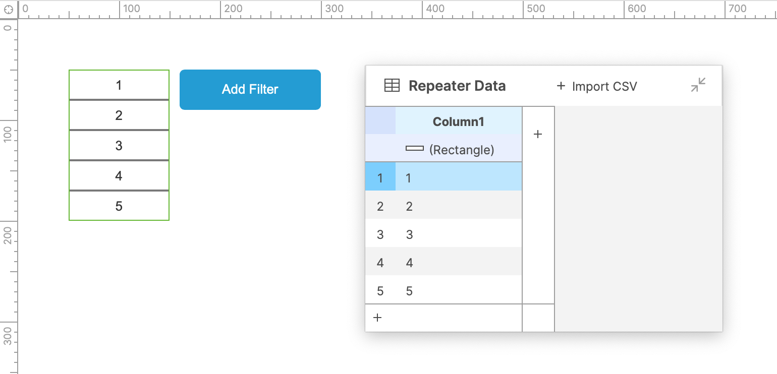 Drag a rectangle widget onto the canvas, right-click it, and select Create repeater from the context menu.