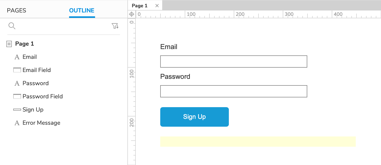 Preview the page and click the signup button. The error message should appear since the text fields are blank.