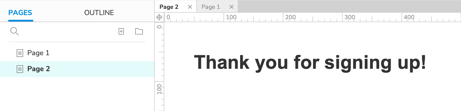 Finally, enter some text in the second text field and click the signup button again. You should now be directed to Page 2 with the successful signup message.