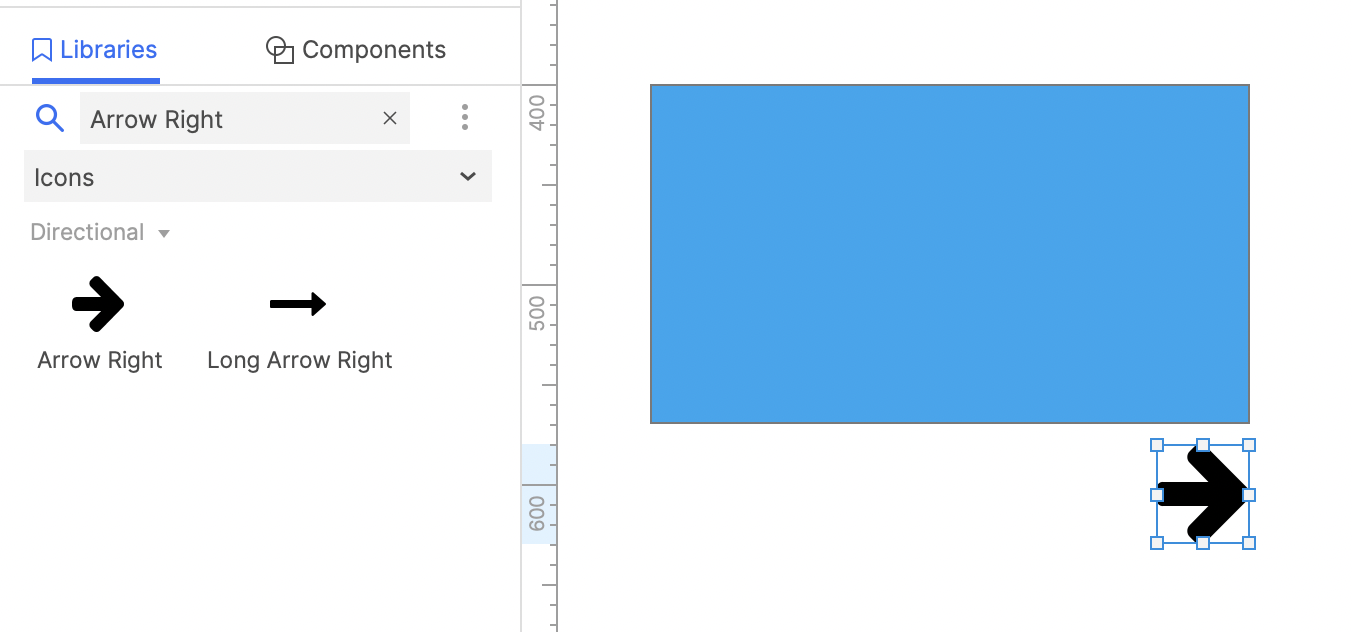 arrowinto the search field at the top-left of the pane, and locate a right-facing arrow that you like. Drag the arrow icon onto the canvas and place it to the right of the dynamic panel.