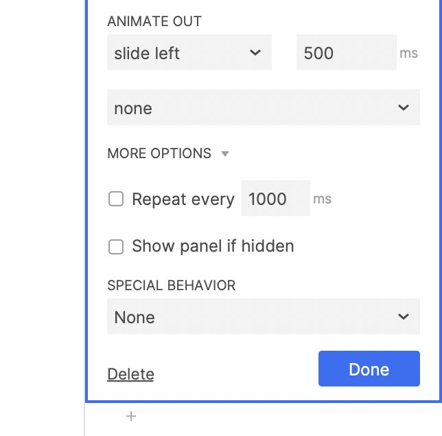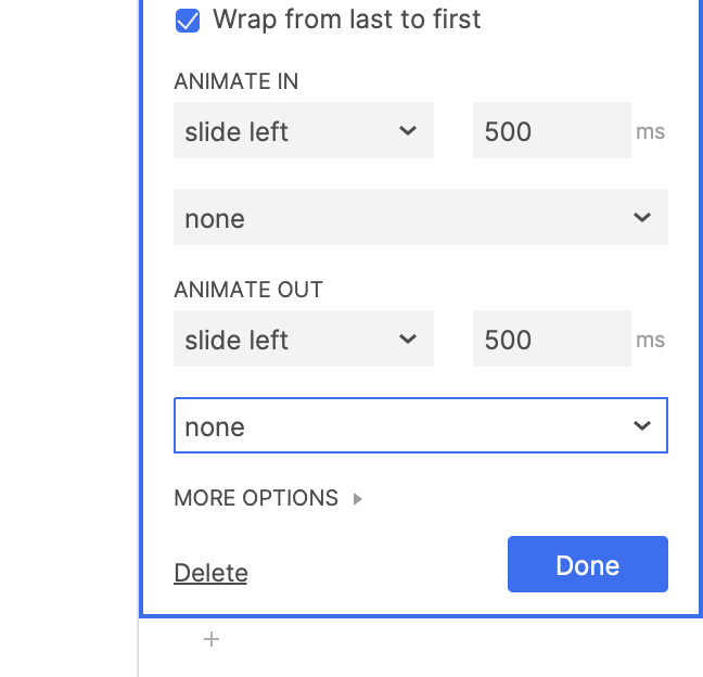 - Under Animate In, select Slide Left. Notice that the Animate Out section automatically changes to match this selection.