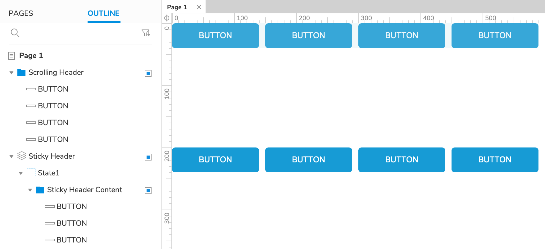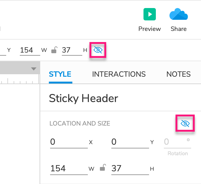 - Select the Sticky Header dynamic panel and click the Hidden icon in the Style pane or the style toolbar.