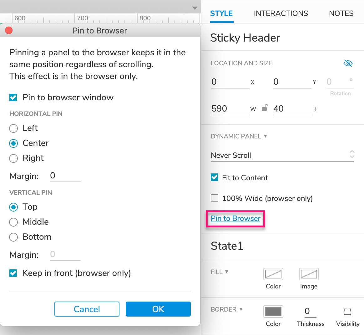 In the Style pane, click Pin to browser.