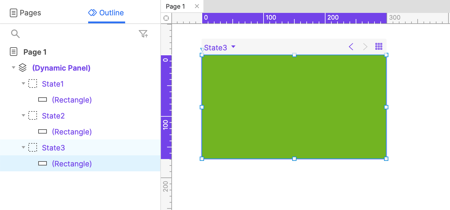 Repeat steps 5 and 6 to create State 3 with its own rectangle widget. Make the rectangle widget green.