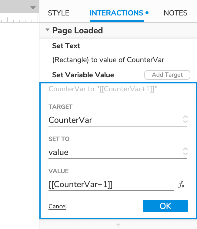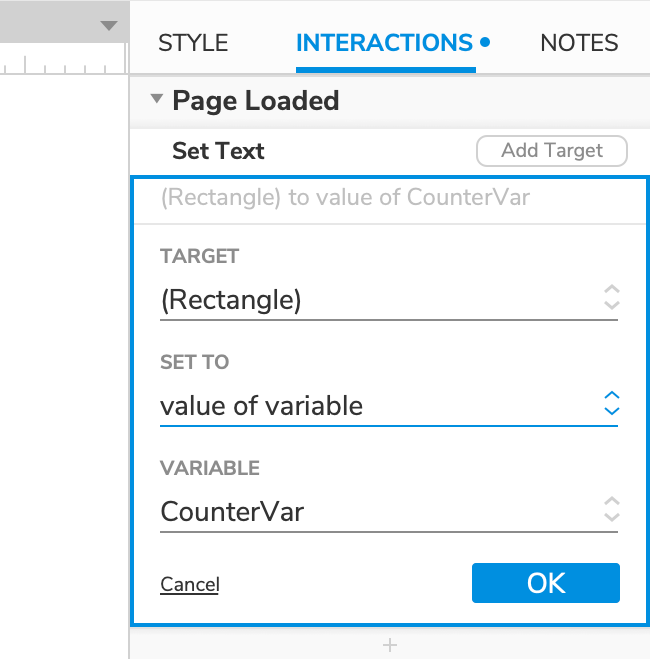 Select CounterVar in the Target dropdown.