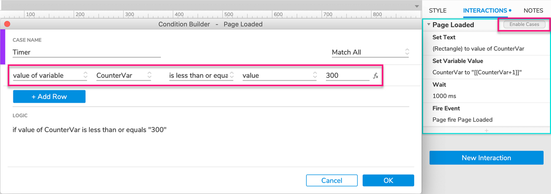 To prevent the timer from going beyond a certain value, add one of the following conditions to the Page loaded case: