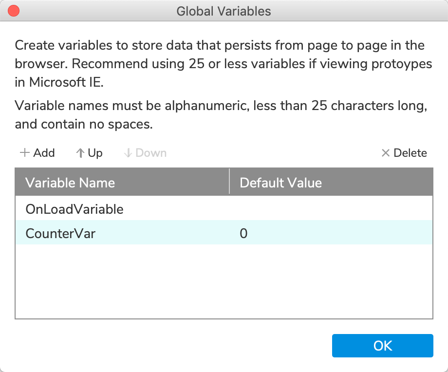 In the Global variables dialog, click Add to add a new variable. Name it